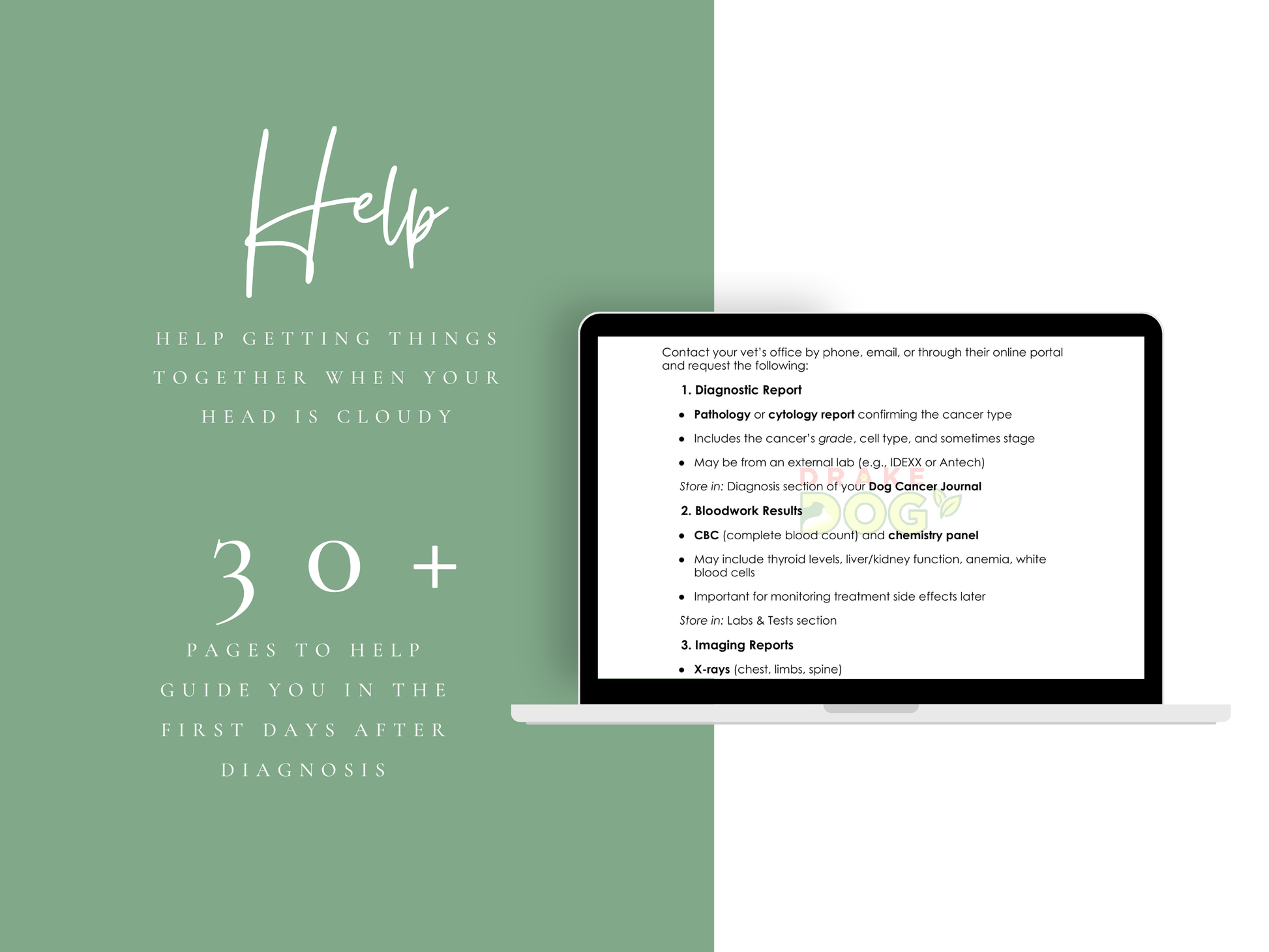 This moment is overwhelming—emotionally, mentally, and logistically. That’s why we created the Cancer Diagnosis Survival Kit, a bundle of six printable tools designed to guide you gently but confidently through the first few days after your dog’s diagnosis.