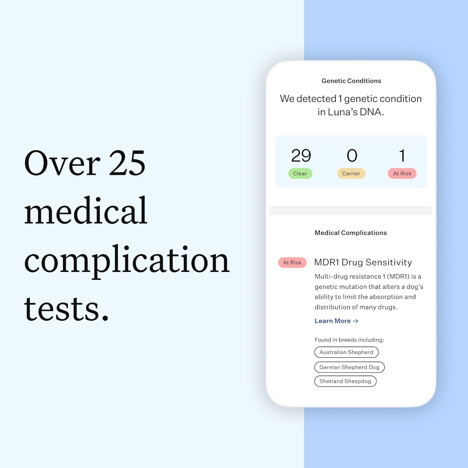 Get ahead of genetic risks—including conditions linked to cancer and other serious illnesses. This includes vital screenings like MDR1 (drug sensitivity) and IVDD (disc disease), so you can create a proactive care plan with your vet.